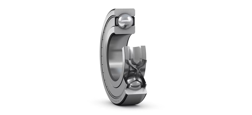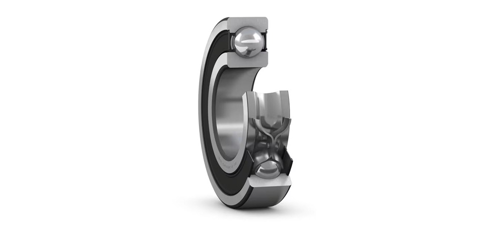 Deep groove ball bearings are the most widely used bearing type and are particularly versatile. They have low friction and are optimized for low noise and low vibration which enables high rotational speeds. They accommodate radial and axial loads in both directions, are easy to mount, and require less maintenance than other bearing types.