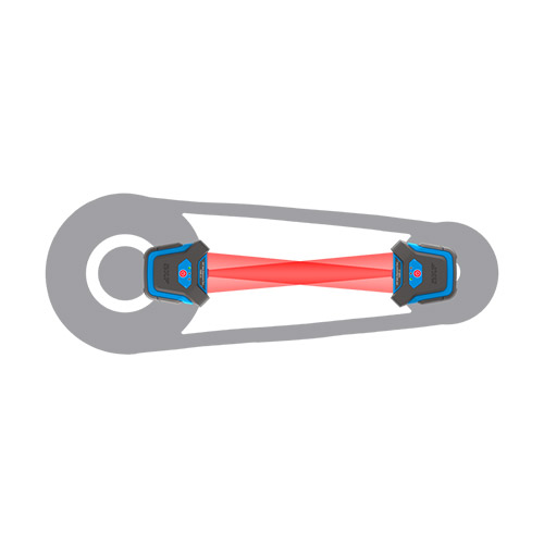 ลำแสงเลเซอร์จะถูกยิงจากตัวส่งไปยังตัวรับ เพื่อช่วยตรวจสอบและแก้ไขการเยื้องศูนย์ในรูปแบบต่าง ๆ ได้แก่