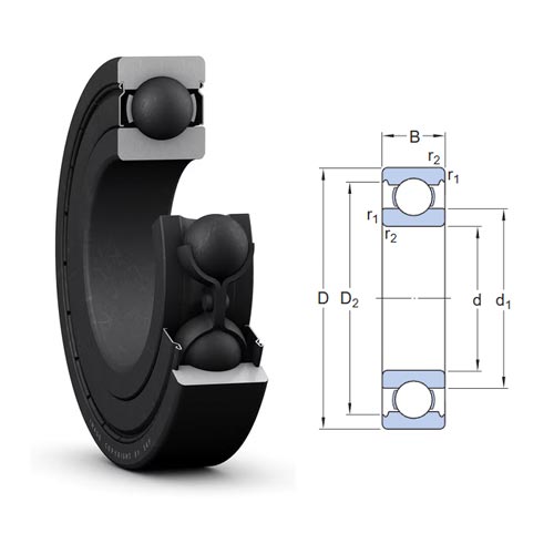 Deep groove ball bearings are the most widely used bearing type and are particularly versatile. They have low friction and are optimized for low noise and low vibration which enables high rotational speeds. They accommodate radial and axial loads in both directions, are easy to mount, and require less maintenance than other bearing types.